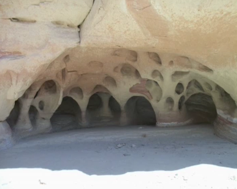 Ervan uitgaande dat het droog staat: loop de wash in en volg deze links af. Je kunt op diverse een afkorting maken waardoor je wat minder tijd nodig hebt om tot aan de "grotjes" te komen. Hiervoor heb je een klein uurtje nodig. Maar dan zie je de bergen opdoemen met daarin vele gaten, "grotjes" die ontstaan zijn door een kolkende rivier. Een lust voor het oog.